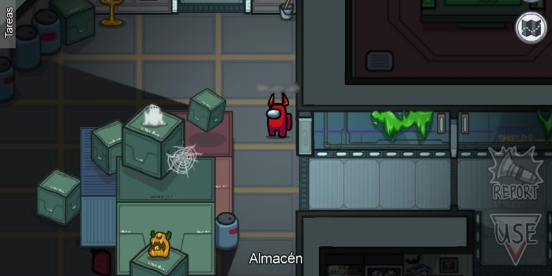 Die drei Karten, aus denen dieses Spiel besteht, Skeld, Polus und Mira HQ, sind jetzt mit Fledermausmustern, Spinnweben, Geistern und grünem Rotz an den Wänden verziert. Aber es hört hier nicht auf, Sie können andere Objekte finden, die von diesen Ebenen verteilt werden, wie Kronleuchter, die um die Ecken verstreut sind, oder Kürbisse auf den Tischen. Keiner von ihnen wird im Spielmodus direkt aktiv sein, daher muss man bedenken, dass alles dekorativ ist.